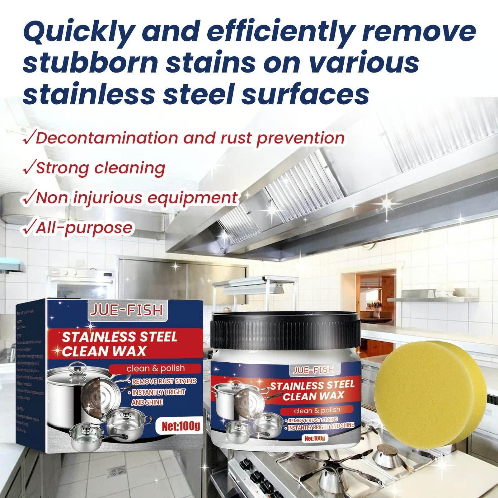 It can remove stubborn stains, grease and dirt, not only can remove dirt, can also restore the luster of stainless steel to make it look like new, still can care for stainless steel and chrome-plated products.